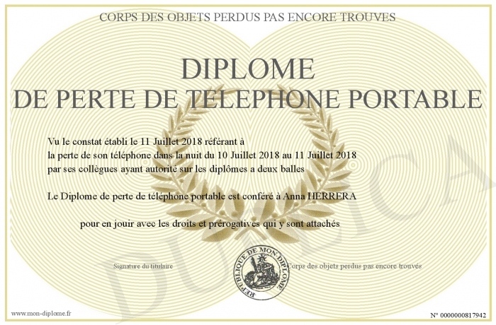 Téléchargement gratuit Diplome De Perte De Telephone Portable